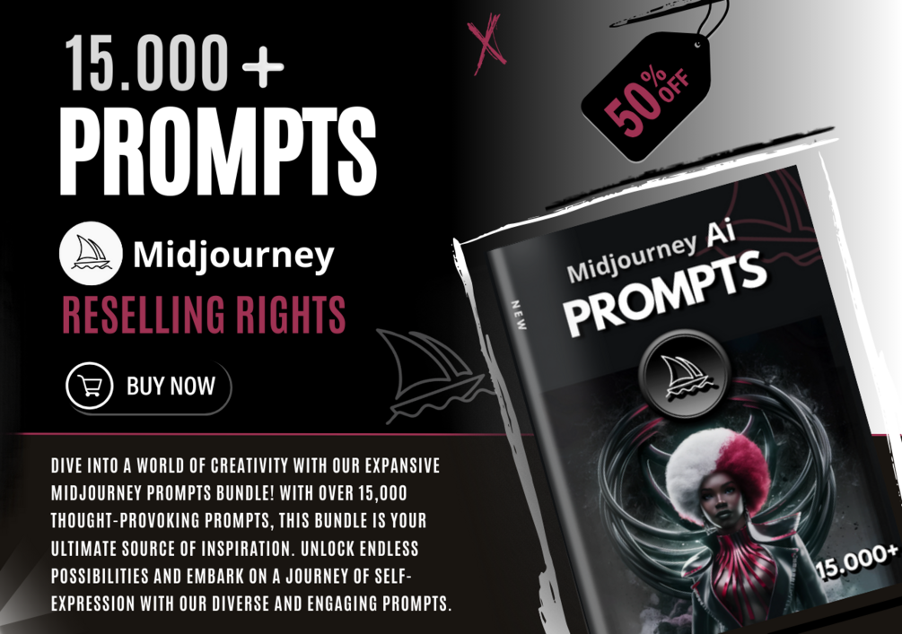- 15,000+ Midjourney Prompts: Access a vast collection of over 15,000 prompts to fuel your creative projects.